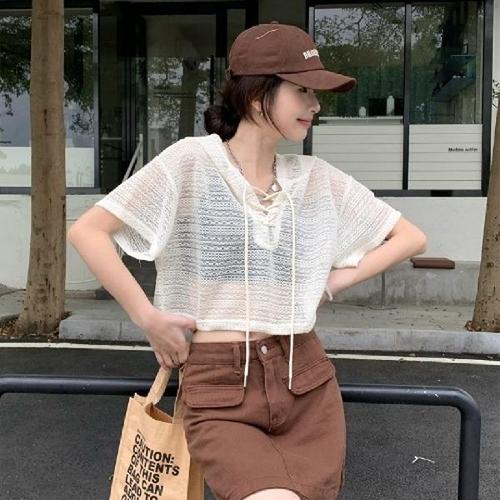 [신상오픈런]|CCT75FC|여자 시스루 페미닌 후드 크롭 반팔 티셔츠_18058527_597559