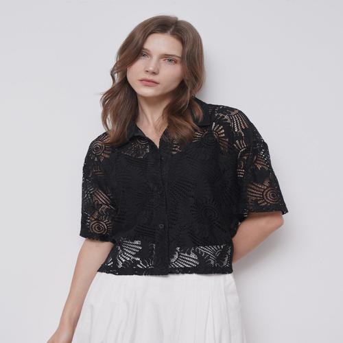 [탱커스]플라워 펀칭 시스루 카라 반팔 블라우스 (TX2BL059L0)