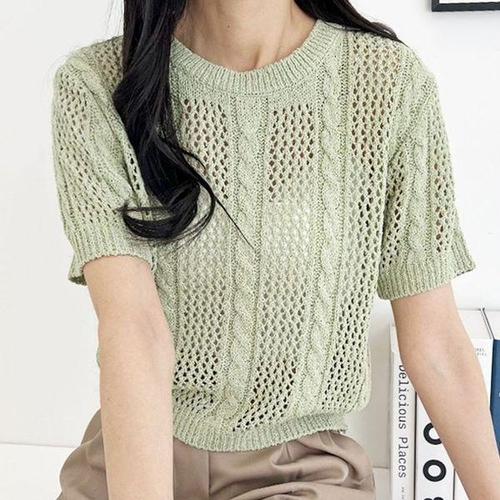 [에이치플러스몰]시스루 여성 반팔 니트 여름 여자 반팔티 니트티 4색