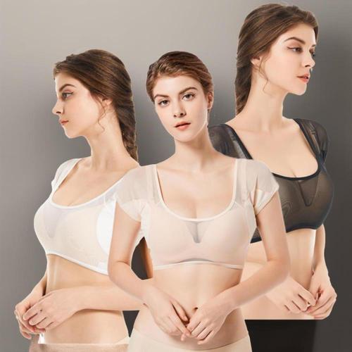 [신상오픈런]여성용 나일론 스판 땀 방지 시스루 크롭 반팔 티셔츠