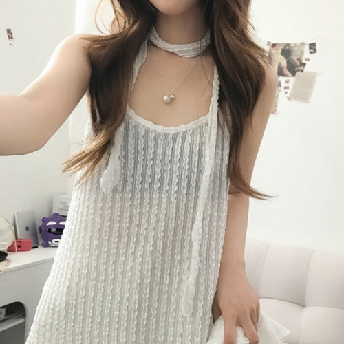 [에이치플러스몰]여성 화이트 끈 원피스 시스루 루즈핏 레이어드