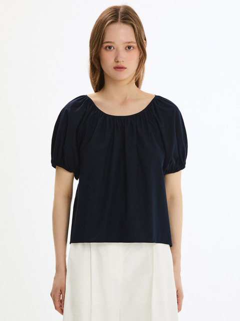 [시스티나] 백 스트랩 퍼프 블라우스 다크네이비