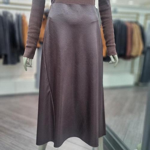 시슬리/애플아울렛/유니크 절개 플레어 레더 롱 스커트 SASKA3541