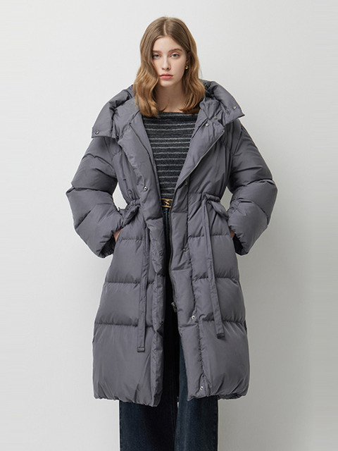 [시슬리] 하이넥 후드 구스 롱 패딩