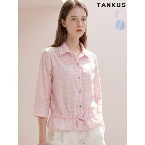 [탱커스]여성 쿨 시어서커 리본끈 5부 블라우스