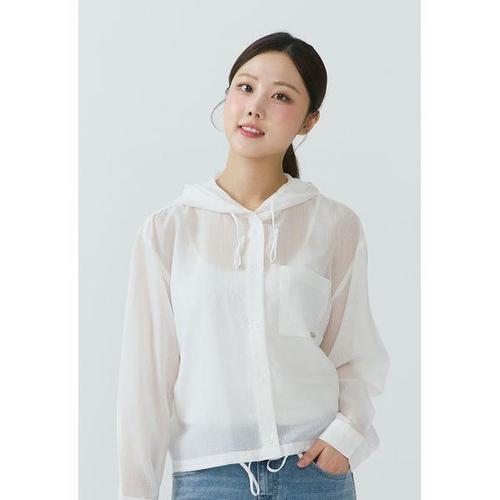 [잠뱅이]여성) 밑단 스트링 시어서커 세미오버핏 후드형 셔츠 AQ1WWU251-WH