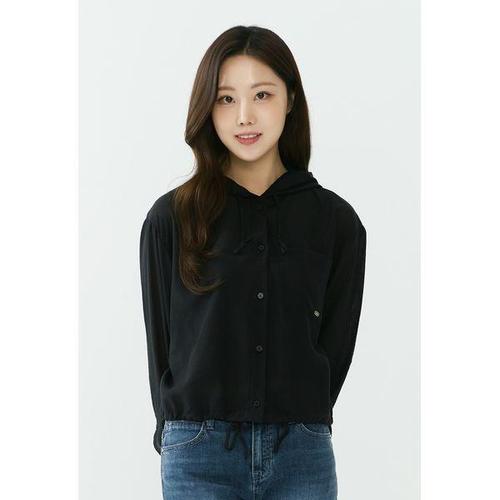 [잠뱅이]여성) 밑단 스트링 시어서커 세미오버핏 후드형 셔츠 AQ1WWU251-BK