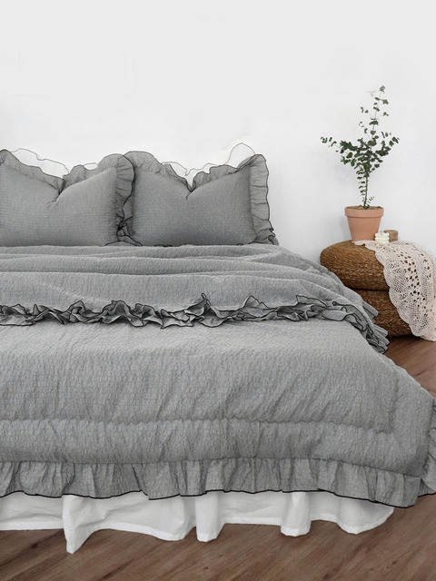 모던 솔리드 프릴 캉캉 시어서커 이불 + 베개커버 세트