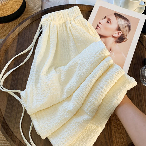 보니제이 / 시어서커 링클 캐주얼 에어리 바지 내추럴 와이드핏