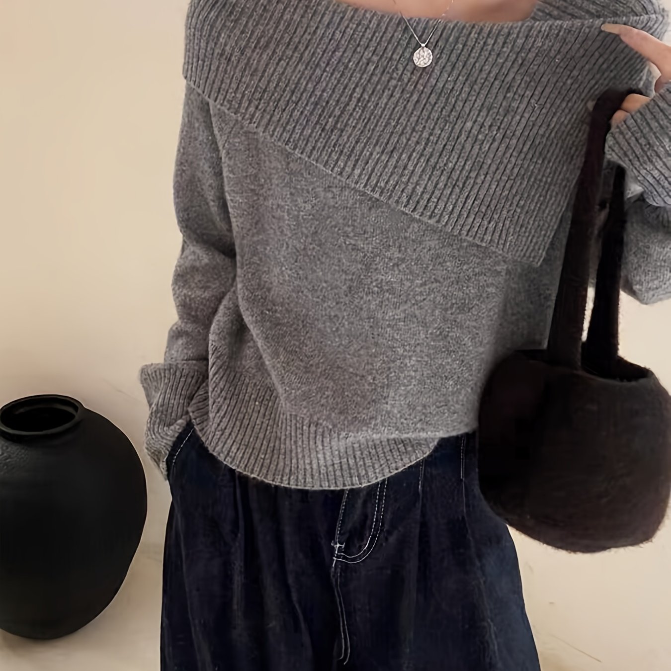 TEMU 여성용 우아한 오프숄더 칼라 탑 - 베이스 레이어 블라우스, 미디엄 스트레치 솔리드 컬러 롱 슬리브 셔츠, 캐주얼 또는 드레시한 옷차림에 적합한 봄/가을 레이어링 아이템, 세탁기 사용 가능