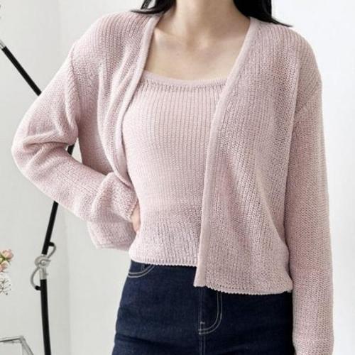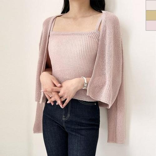 [엄지척]스퀘어 베이직 뽀얌 가디건세트 시원한 나시 여자니트_19791111_667501