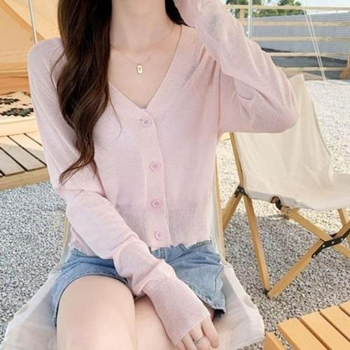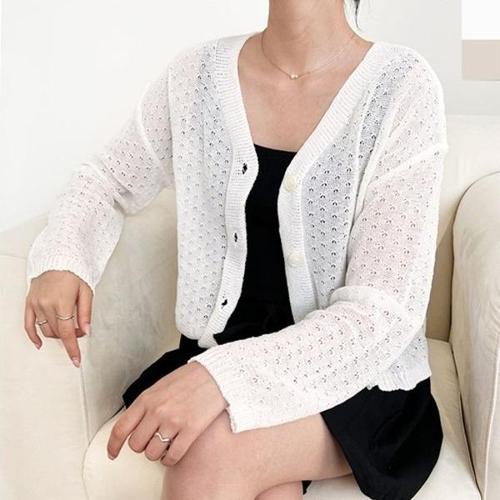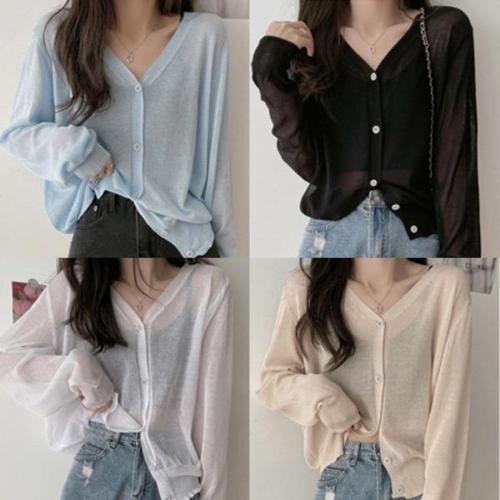 [엄지척]여자 여름 얇은 시스루 시원한 V넥 니트 가디건_19802018_667501