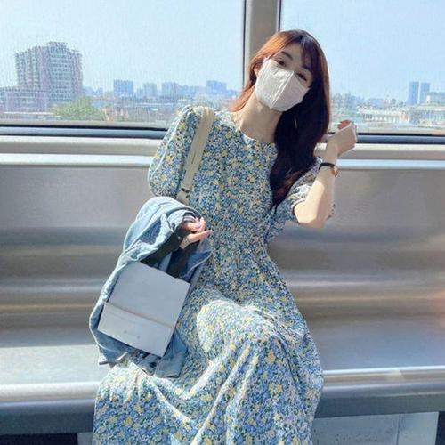 [에이치플러스몰]여성 시원한 플라워 패턴 반팔 원피스