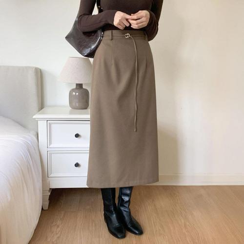 [시크라인] 르네슈 사이드 체인장식 언발 절개 스커트