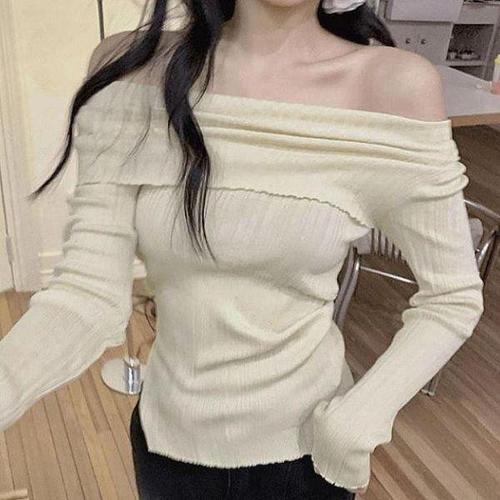 [셀러허브_여성트랜드패션]ONM 여성 오프숄더 골지 시크라인 긴팔 티셔츠