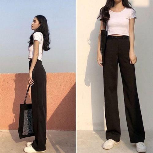 여성 느슨한 봄 여름 2025 새로운 높은 허리 넓은 다리 슬림 캐주얼 바지 한국 패션 트렌드 여성 정장 스트레이트 바지