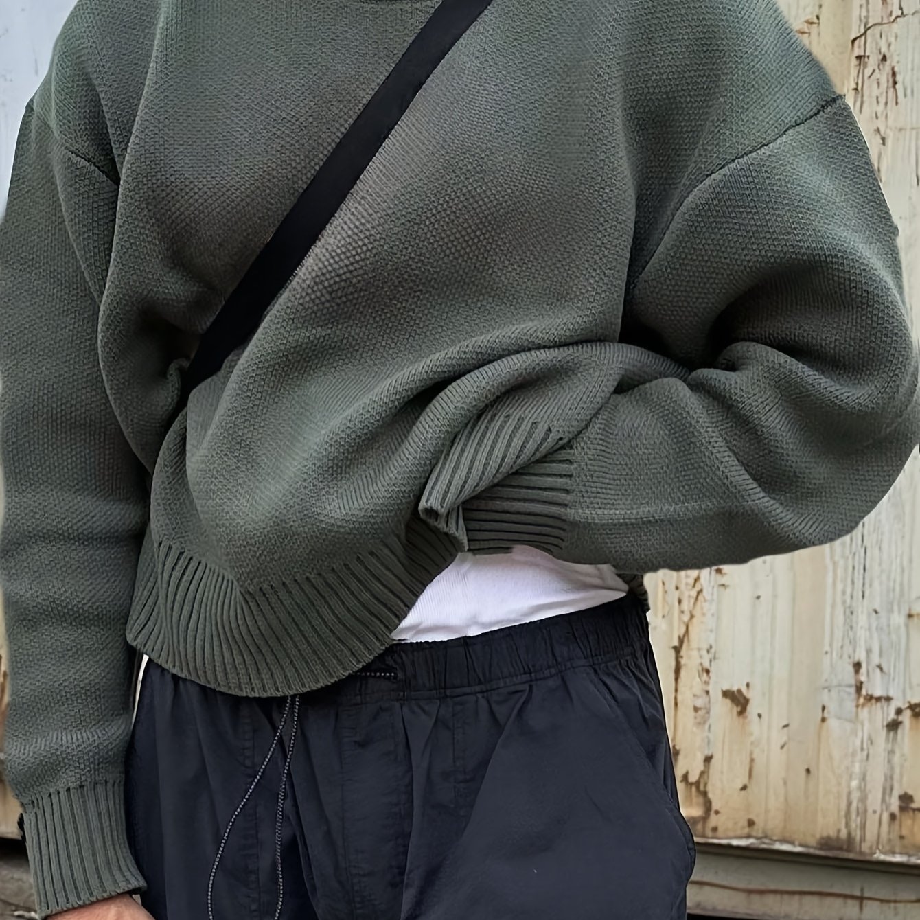 TEMU 가을 겨울 남녀공용 컬리지 스타일 스트리트 패션 솔리드 컬러 긴팔 루즈핏 오프숄더 니트 스웨터