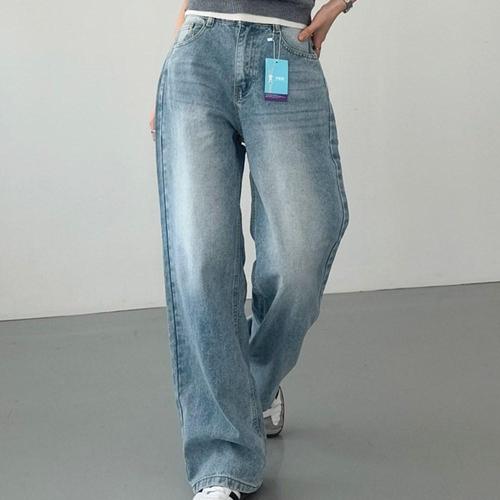 [옷자락]여자 논스판데님 워싱진 시티보이룩 일자청바지 팬츠