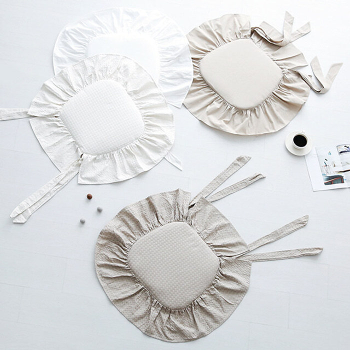 루나뷰링 1+1 끈달린 식탁 의자 면 방석 쿠션 논슬립 프릴 2p