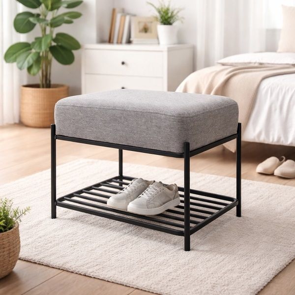 오아루 철제 현관 벤치 신발장 수납장, 그레이+블랙프레임
