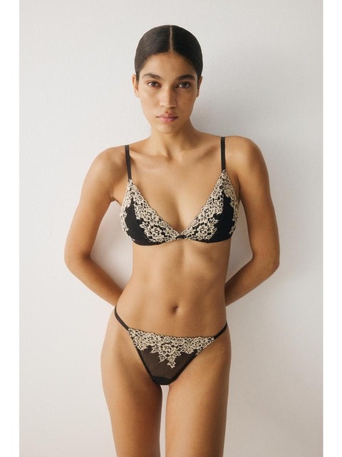 [에이치엔엠] 레이스 Thong 팬티 2피스 세트 블랙/크림 1302554003