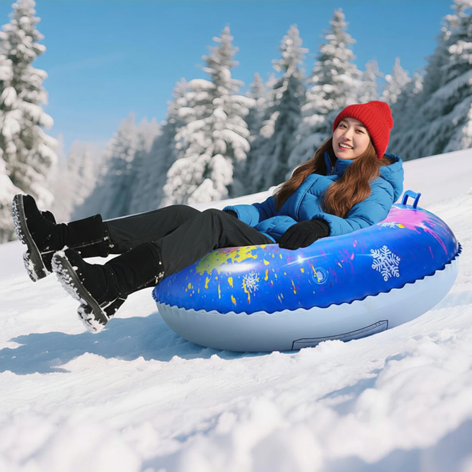 핸들이 있는 인플레이터블 스노우 튜브, 추위에 강한 스노우 썰매 튜브, 선물용 야외 겨울 활동 가족 활동 스노우 튜브