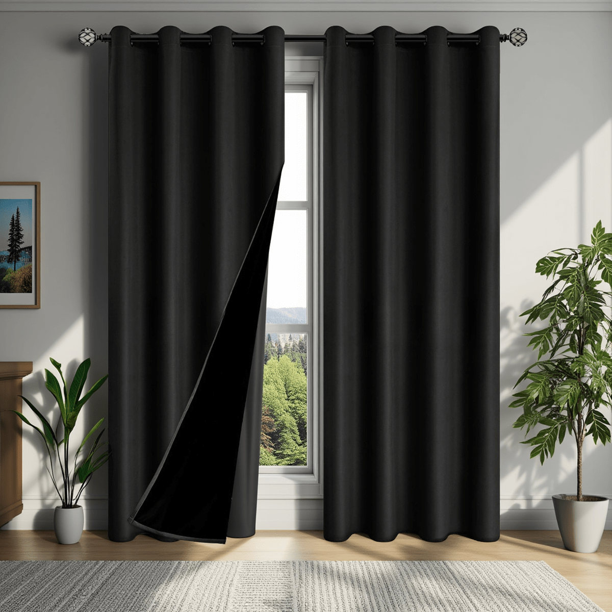 TEMU 2개 세트 100% 커튼, 천공형 걸이 방식, 단열 기능, 자외선 차단, 프라이버시 보호, 침실·사무실·주방·거실·스터디룸 및 홈 데코레이션용
