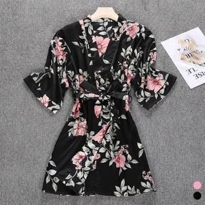 여자 꽃무늬 실크 로브 가운 LDW-RB-SSIS467-블랙