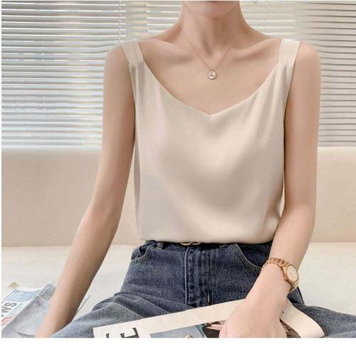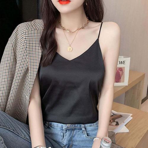 [셀럽하우스]여름 YUFQ0446 이너 여성 새틴 실크 데일리 끈나시 티셔츠