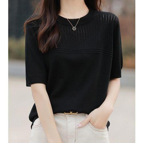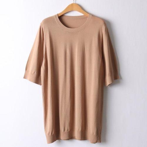 [핑크엘리제]라운드넥 여름 실크 반팔 니트티 디오니니트티