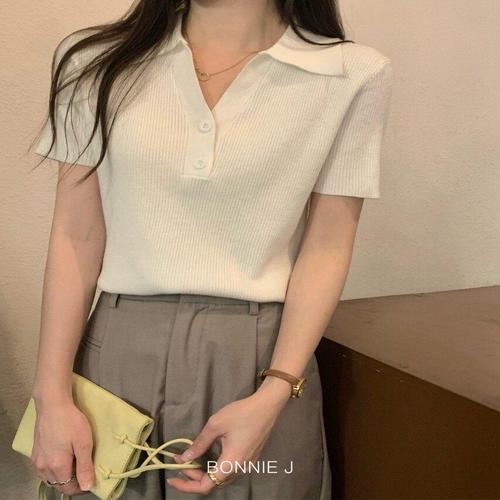 [유아몽드]고급 실크 니트 봄여름 반소매 카라 4컬러 니트 반팔