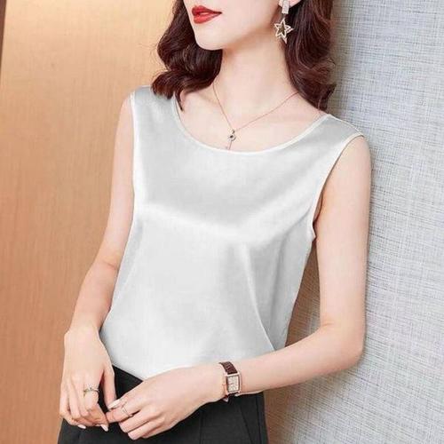 실키 새틴 민소매 블라우스 여성 여름 슬리브리스 WFHX5I3