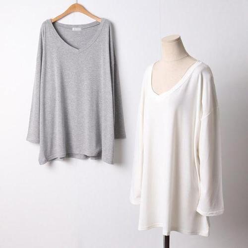 [셀러허브_여성트랜드패션]빅사이즈 512 브이넥기모실키긴팔티 DRAF953