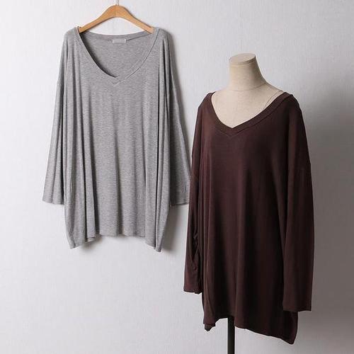 [셀러허브_여성트랜드패션]빅사이즈 512 실키브이넥여리티셔츠 DRAF084