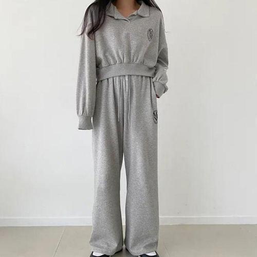 심플룩 트렌디 여자 숏탑블라우스 심플 루즈 바지 셋업