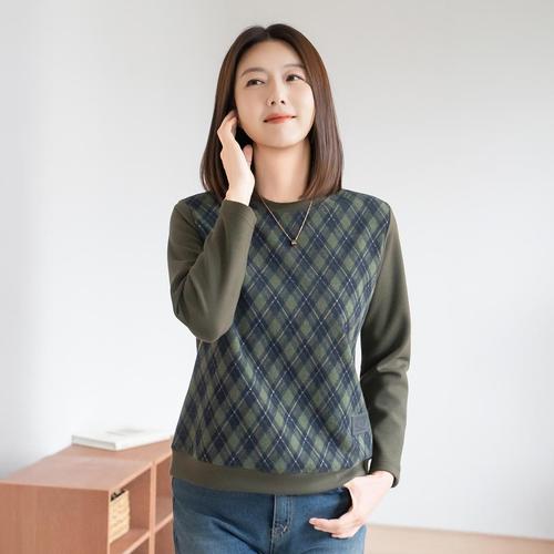 엄마옷 마담4060 심플체크배색티셔츠-QTE2512002-