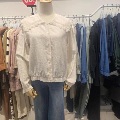 매장정품 THURSDAY ISLAND 써스데이 아일랜드 빅카라 레이스 포인트 블라우스 T252MBL132W 513412