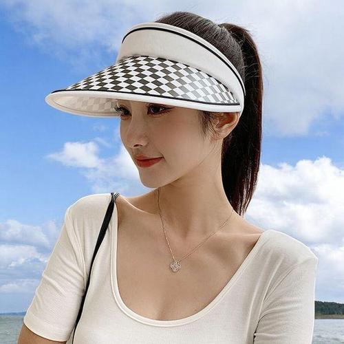 [에이치플러스몰]PrimeBulk 리빙 체크무늬 썬캡(화이트) 모자 선바이저
