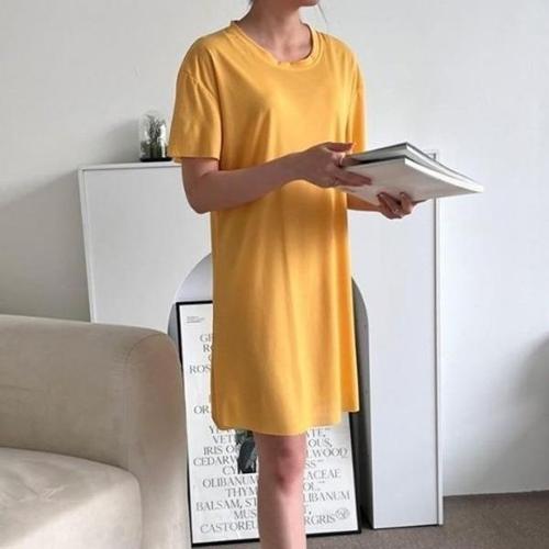 [엄지척]여름 시원한 아이스 쿨 홈웨어 레이온 롱 반팔 원피스_19871083_667501