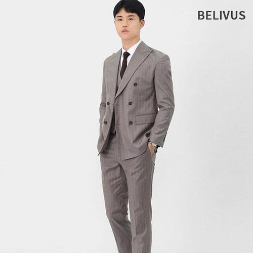 [빌리버스]빌리버스 남자 모던 스트라이프 더블자켓 정장 쓰리피스 세트 BVOT166