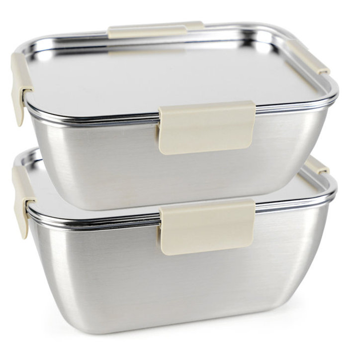 인콕 국산 올스텐 크림 스텐밀폐용기 직사각 6호 1520ml 2P