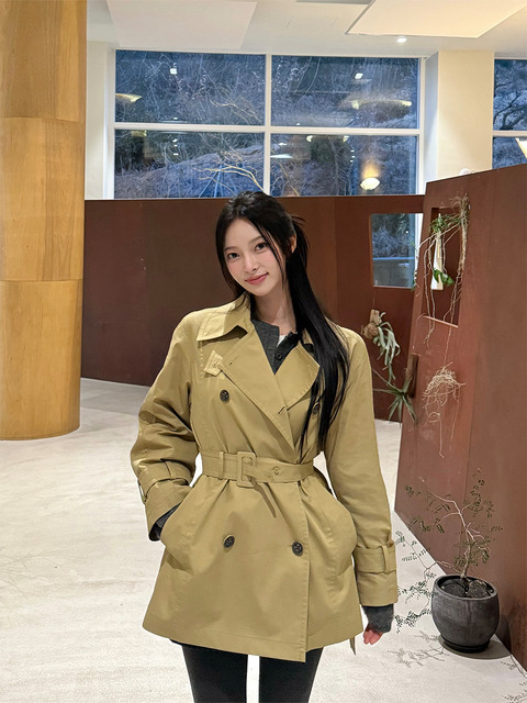 2025년 신상 여성용 브리티시 스타일 트렌치코트 스타일 더블 브레스티드 긴소매 벨트 라펠 재킷 숏코트