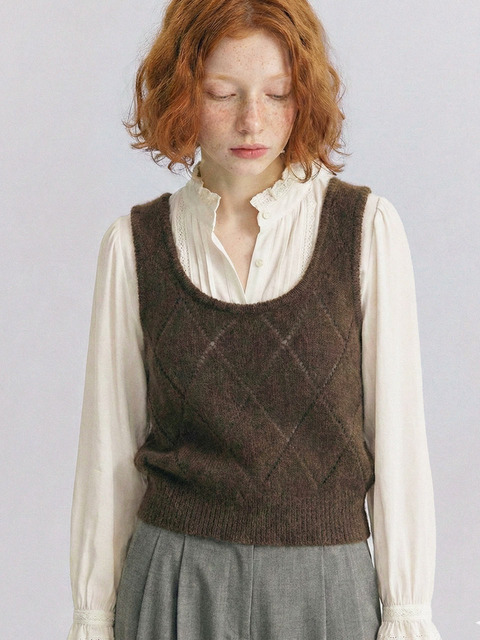 [마리지아]아가이 다이아 니트 V넥 조끼_MKAB9006