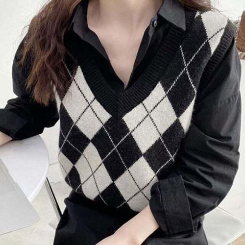 [셀럽하우스]보들 USUJ0692 인기 여성 니트 아가 일패턴 체크 레이어드 조끼