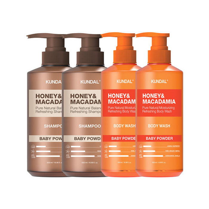 쿤달 쿤달 허니앤마카다미아 베이비파우더 샴푸+트리트먼트+바디워시 500ml 세트