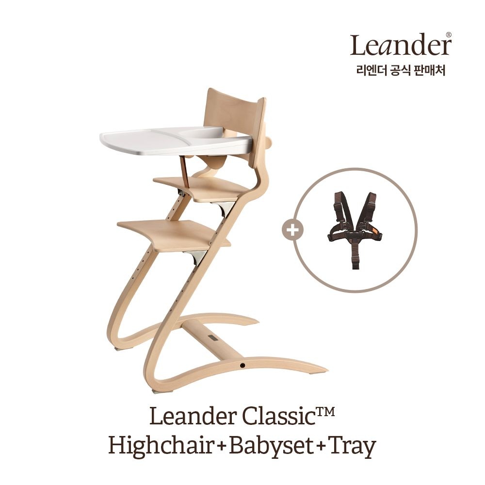 리엔더 클래식 원목프리미엄 하이체어 유아의자+베이비세트+트레이-화이트워시