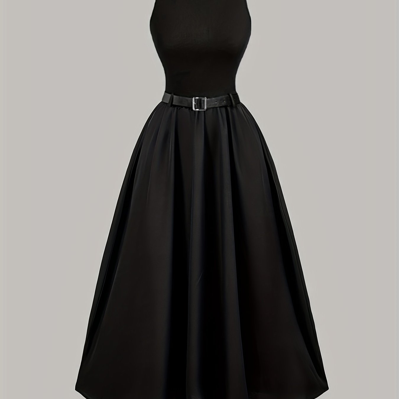 TEMU 2026 봄/여름 단색 우아한 패셔너블 하이엔드 가운, 핏된 칼라, 러플 하이웨스트, 민소매 디자인, 여성용 롱 A라인 실루엣, 메탈릭 새틴 소재. 볼, 이브닝 이벤트, 런웨이 소셜 모임에 완벽.