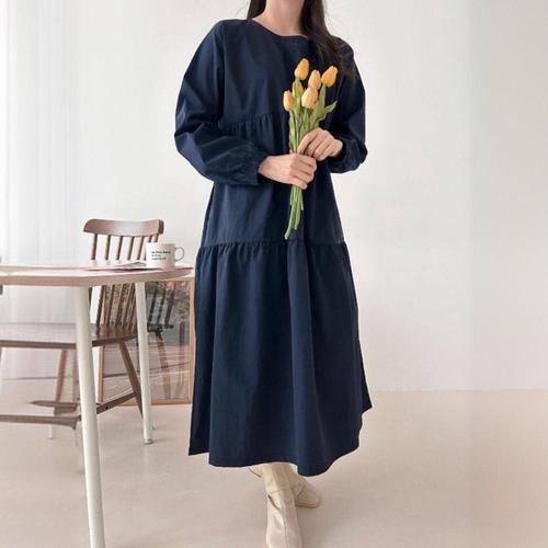 |CDO5406|여성 반집업 카라 아노락 스트링 소매 긴 원피스