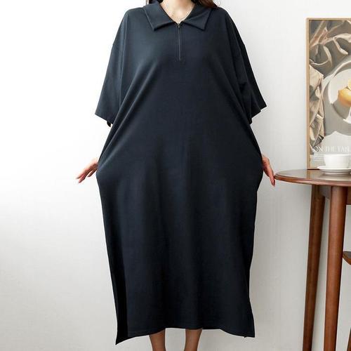 [옷자락]여성 임부복 아노락 카라넥 빅사이즈 칠부 롱원피스