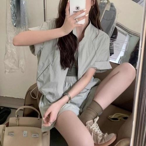 [옷자락]여성 캐주얼 아노락 오버핏 반팔 집업 반바지 세트